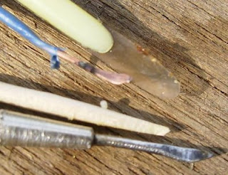 Resimde Çin kaşıgı,zil telinden ezilerek yapılmış bir kaşık,kürdan esneyecek şekilde kesilsin gene larvayı çok rahat alır ve bırakmasıda kürdanın çok rahat.Bir saatçi tornavidası kaşıga dönüştürülmüş vaziyette.