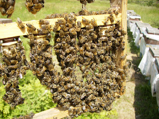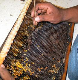 Memelerin koparılıp atılmış hali.Çıtalardan bu memeler,arılar silkelenerek koparılacak ve kovanda açık yavru bırakılmayacak.